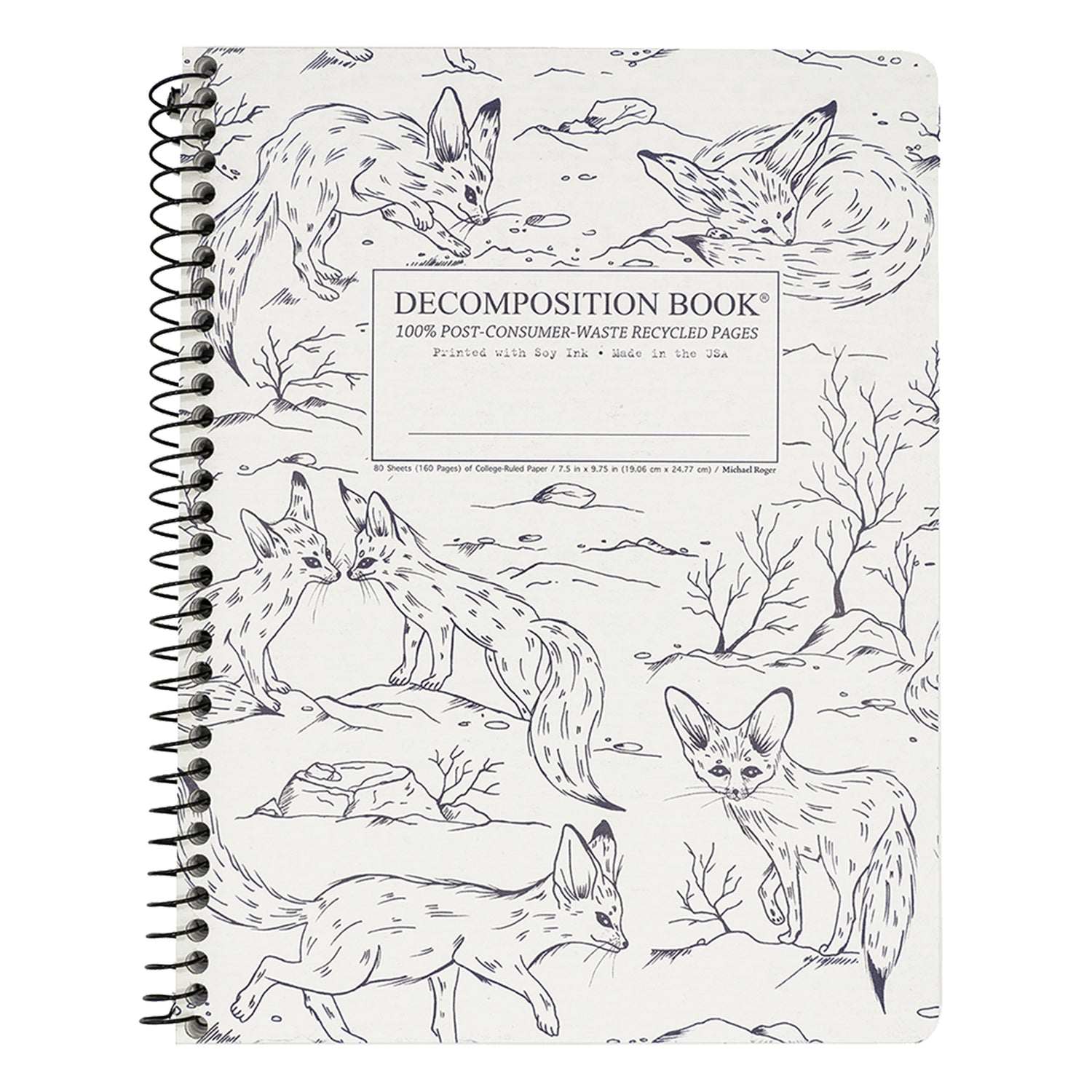 The Decomposition Book notebook features 100% post-consumer recycled pages printed with soy ink. Each notebook includes 80 sheets (160 pages) of college-ruled paper. 7.5" x 9.75". Coil bound.