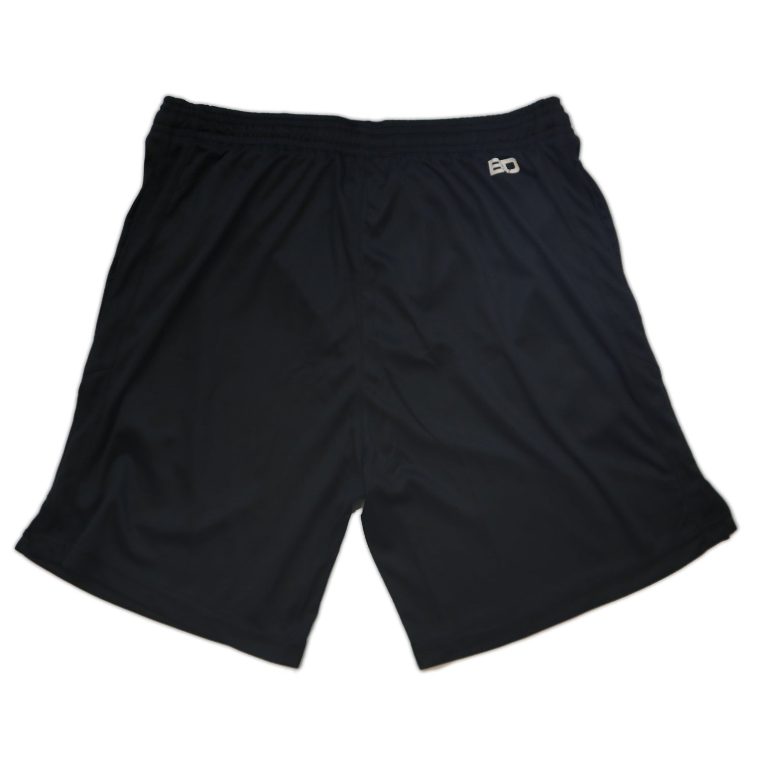 These shorts are active wear with an elastic waistband and drawstring and pockets. 100% polyester.