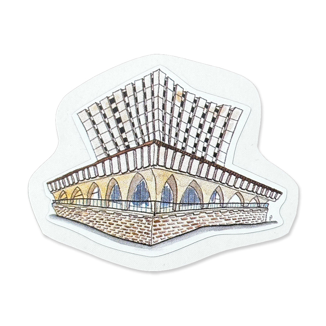 Celebrate the beauty of the University of Waterloo with these stunning building stickers, created in collaboration with local artist Della van Dokkumburg. Known for her bold use of color, intricate linework, and vibrant storytelling through art, Della captures the essence of Waterloo's iconic campus architecture in each piece.